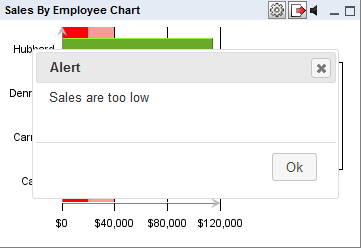 icon for the Sales By Employee Chart. For our watched Not Optimal alert, check Sound and enter any message into Alert Message textbox. Click on OK and use Preview button to preview the dashboard.