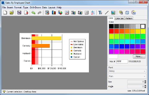 Launch EDAB Organizer (as described in Section 2.1.1 - Starting the Organizer), expand Examples/Dashboards/Alerts Components and double-click on the Sales By Employee Chart.