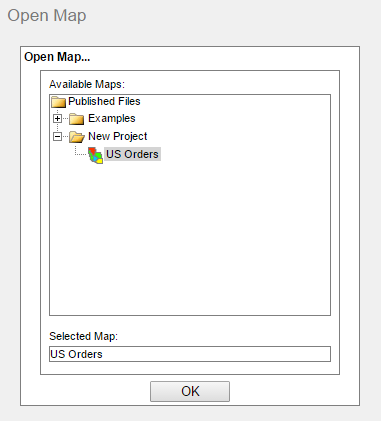 button on the toolbar. This will open a dialog allowing you to specify a name for the map. Enter a name for the map, select the project where you want to save it and click the button.