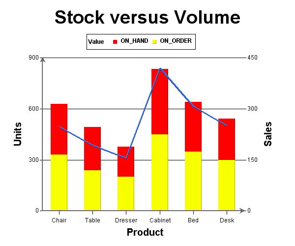 QbChart chart = new QbChart(this, QbChart.VIEW2D, QbChart.STACKAREA, "sample.dat",colInfo); IDataLineSet hDataLines = chart.gethDataLines(); IHorzVertLine hLineA = hDataLines.newHorzVertLine(IHorzVertLine.VERTICAL_LINE, "hLineA"); hLineA.setLineValue(18); // the value on X-Axis hLineA.setLineFromValue(36878); // the value on Y-Axis, by default, this is minimum value of Y-Axis hLineA.setLineToValue(320397); // the value on Y-Axis, by default, this is maximum value of Y-Axis hLineA.setThickness(1); hLineA.setLineStyle(IDataLine.DOTTED_STYLE); hLineA.setColor(new Color(120, 120, 120)); hLineA.setTitleVisibleInLegend(false); hDataLines.add(hLineA); IHorzVertLine hLineB = hDataLines.newHorzVertLine(IHorzVertLine.HORIZONTAL_LINE, "hLineB"); hLineB.setLineValue(320397); // the value on Y-Axis hLineB.setLineFromValue(6); // the value on X-Axis, by default, this is minimum value of X-Axis hLineB.setLineToValue(18); // the value on X-Axis, by default, this is minimum value of X-Axis hLineB.setThickness(1); hLineB.setLineStyle(IDataLine.DASH_STYLE); hLineB.setColor(new Color(120, 120, 120)); hLineB.setTitleVisibleInLegend(false); hDataLines.add(hLineB);