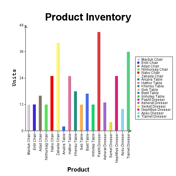 Switching the data source to point to a database is simple. All you would need to do is provide the database connection information as well as the query to be used and pass that to the QbChart object. You can provide the database connection information (as well as the query) in a DBInfo object (for more information on creating a DBInfo object, please refer to Appendix 3.B.1 - Data from a Database).