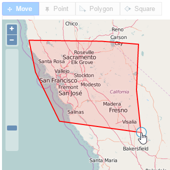 You can move any of the already existing map points by dragging the appropriate map marker with mouse. You can also resize a shape by dragging the edge of a side to any direction.